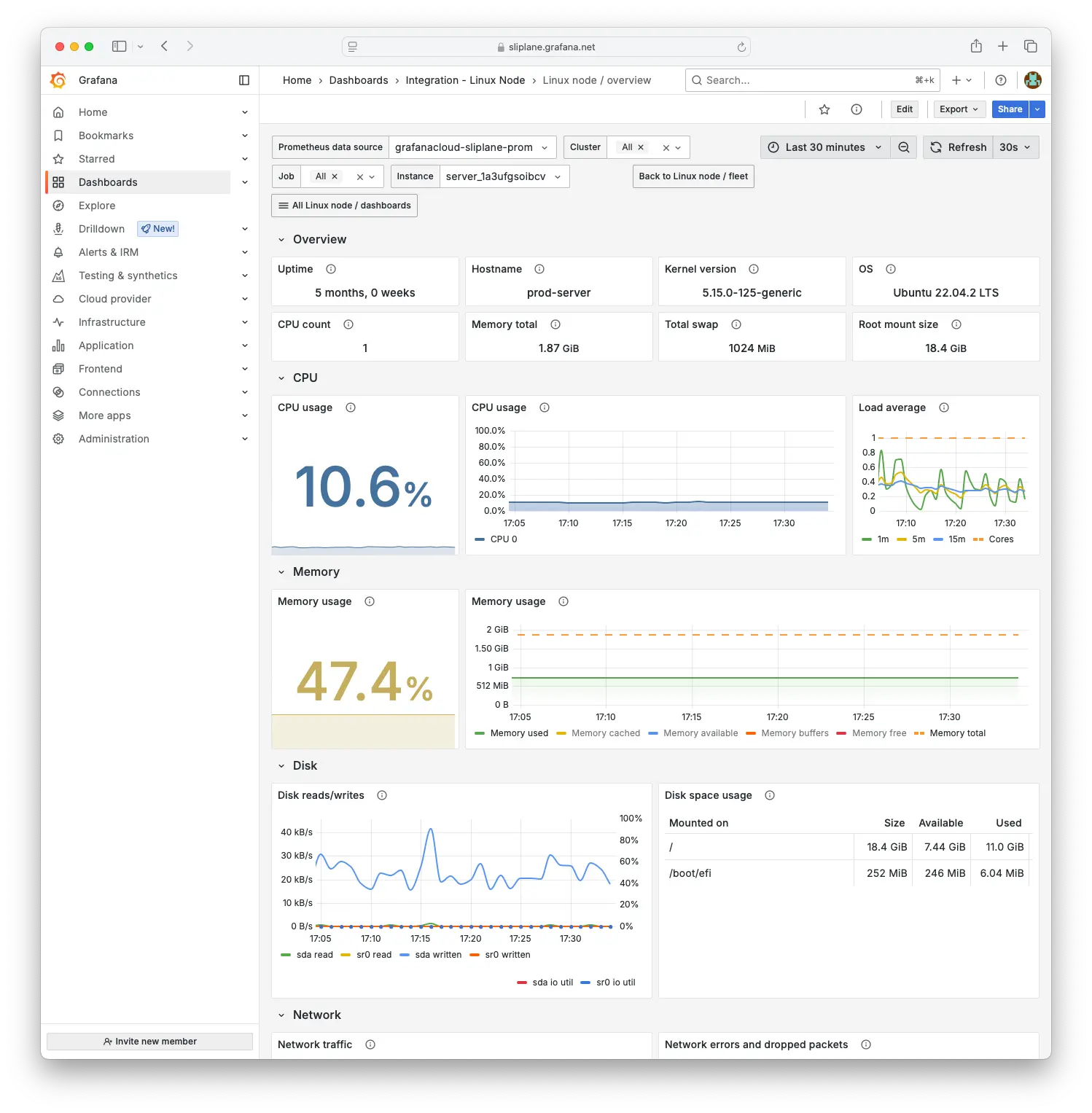 The server dashboard should look something like this: